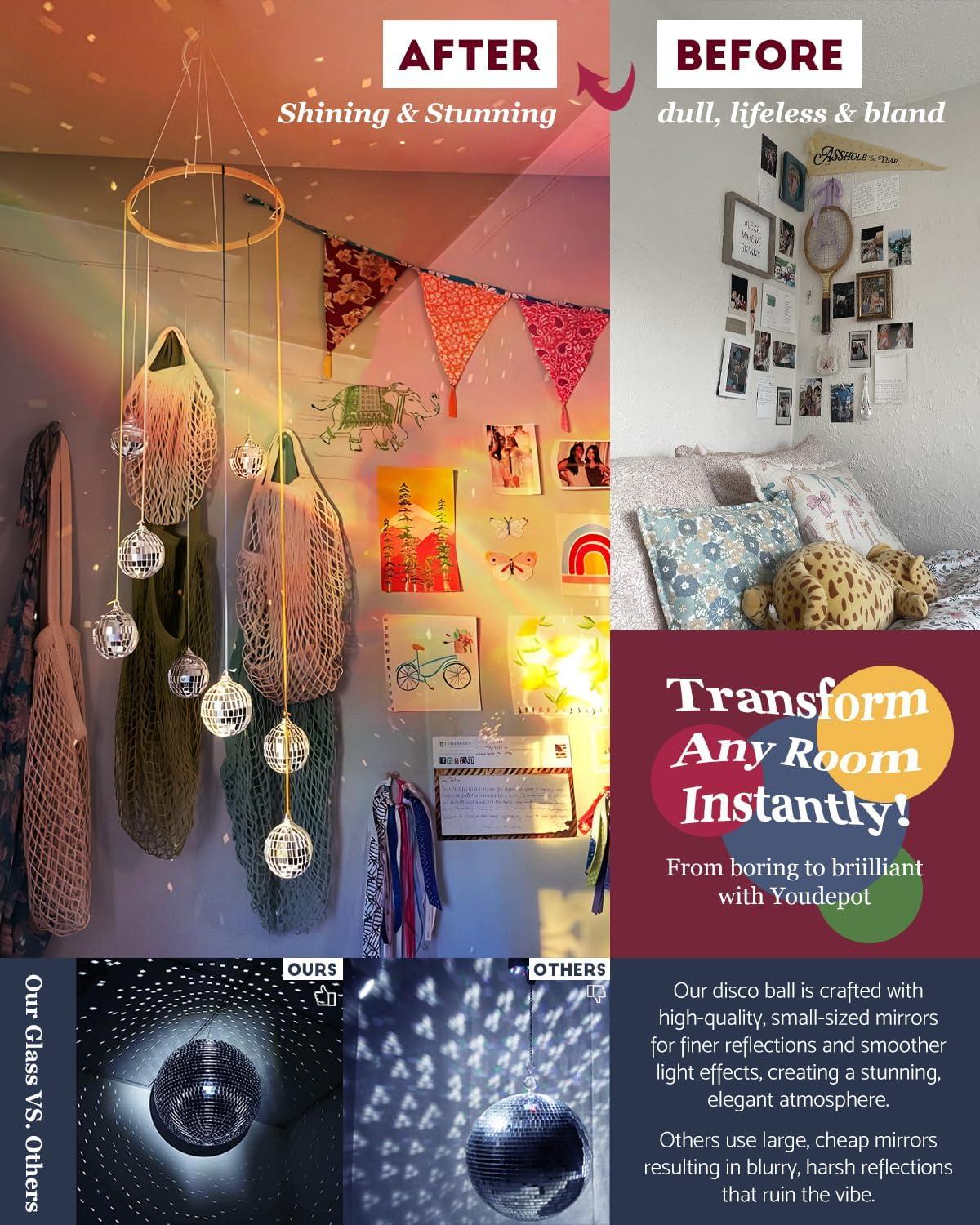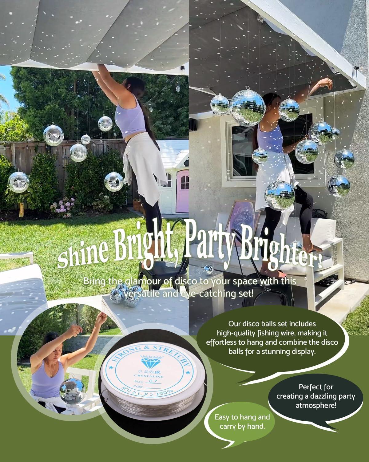 Includes Hooks & 10m Fishing Line for Easy Hanging All balls come with hooks, plus a 10-meter clear fishing line for flexible placement – perfect for creating dynamic hanging disco ball displays.