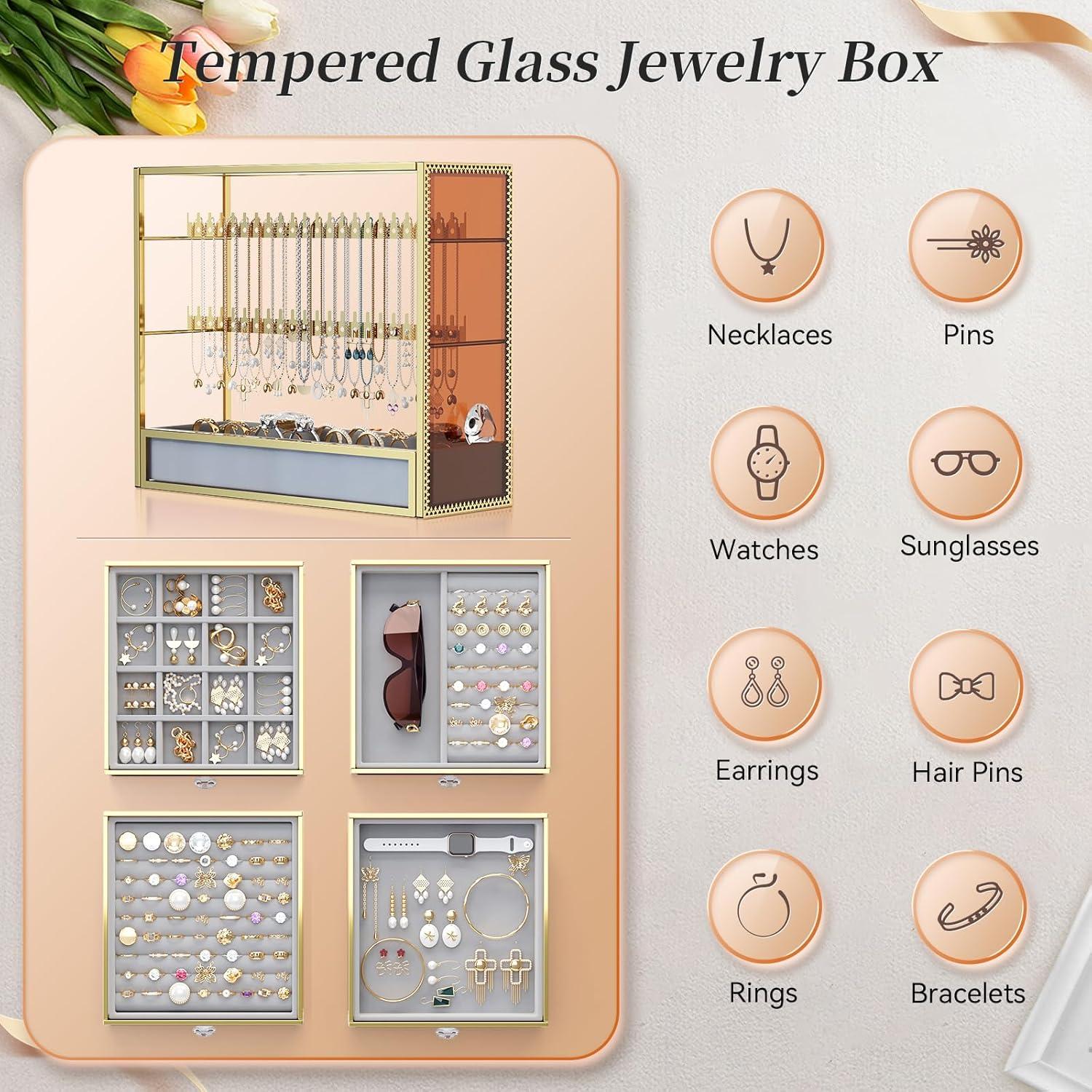 Premium Quality Material: Crafted from high-quality double-layer plating tempered glass, our glass jewelry box is engineered to resist rust and fading, ensuring your precious items are well-preserved for years to come. This jewelry organizer is a testament to enduring beauty and protection.
