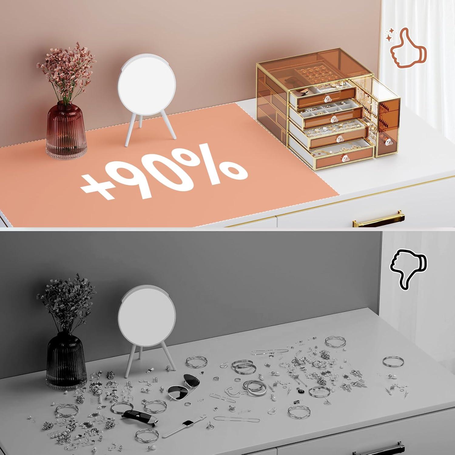 Practical Design: Ideally suited for any spot, from bathroom counters to dressers, this versatile jewelry box for earrings, necklaces, and bracelets simplifies jewelry organization. Its user-friendly design ensures your favorite pieces are always within reach, making it a standout among jewelry boxes & organizers.