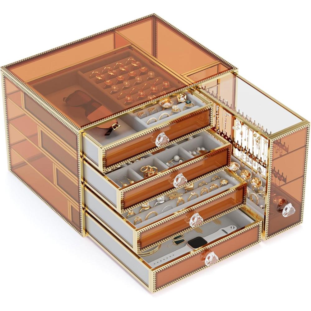 Optimal Size: At 10″L x 7.5″W x 6.7″H, this jewelry box for women features five expansive layers, offering ample space to organize and easily access your cherished jewelry pieces. It's a large jewelry organizer that meets diverse storage needs.