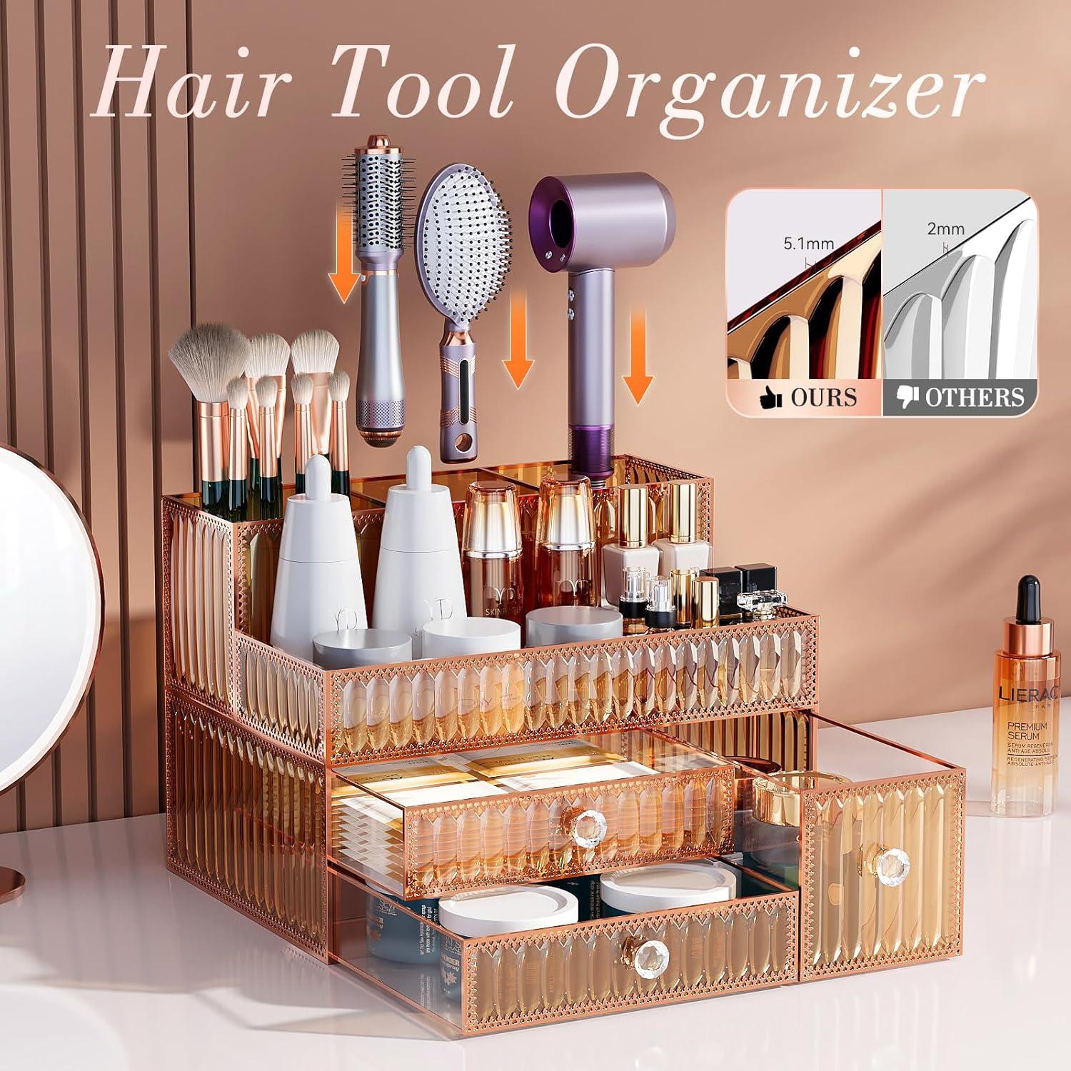 2. Multi-Purpose & Easy to Use – Our makeup organizer doesn't require any assembly and can serve multiple purposes, keeping your cosmetics, hair dryer, makeup brushes, perfume, comb, and lipstick organized on your bathroom counter or dresser.