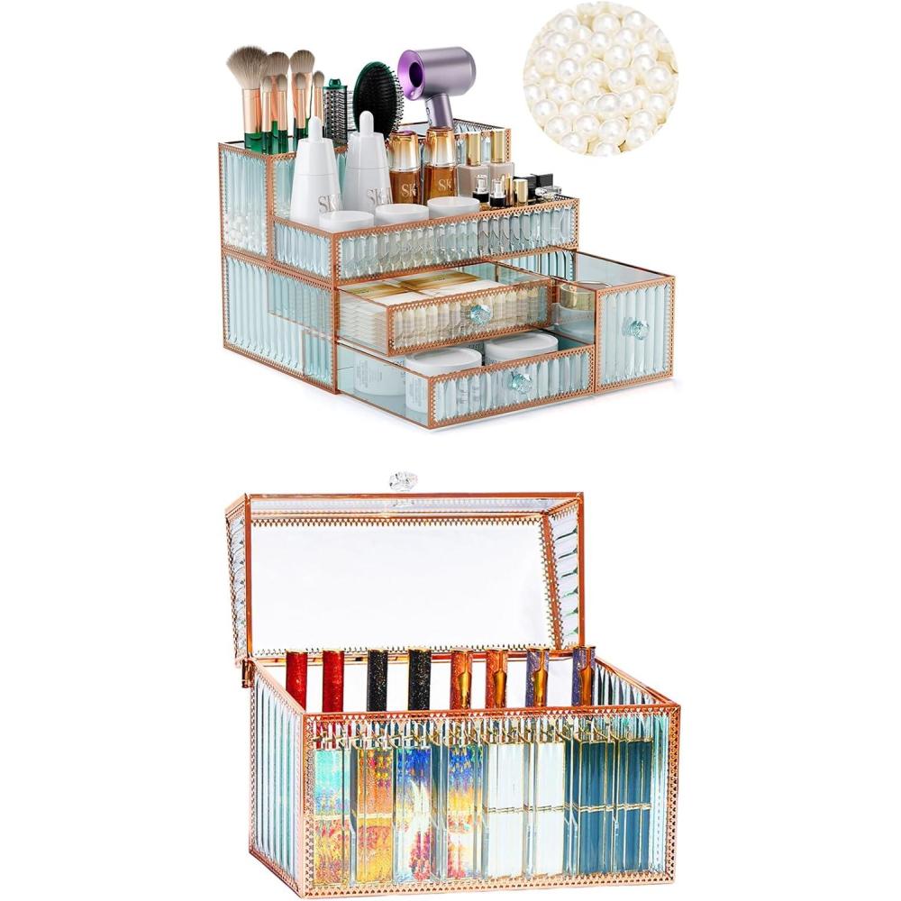 Enhance your beauty storage with the Youdepot Tempered Glass Hair Tool and Makeup Organizer, a versatile and elegant solution designed to keep your essentials organized and accessible. This multi-purpose organizer functions as a hair dryer holder, makeup organizer, and lipstick holder, making it perfect for bathroom counters, bedrooms, and dressers. Crafted from durable tempered glass, this organizer is built to withstand daily use while maintaining its stylish appearance. Its sturdy construction ensures that your beauty tools and cosmetics are stored securely, adding a touch of sophistication to your space. Designed for convenience, the Youdepot organizer requires no assembly, allowing you to start organizing your beauty essentials right away. Its elegant design makes it a perfect gift for any occasion, whether it’s Christmas, New Year, Valentine’s Day, Mother’s Day, or a birthday. It’s an ideal present for friends, family, and anyone who loves beauty and organization. Choose the Youdepot Tempered Glass Hair Tool and Makeup Organizer to transform your cluttered spaces into organized, stylish areas, providing a chic and functional solution for all your beauty storage needs.