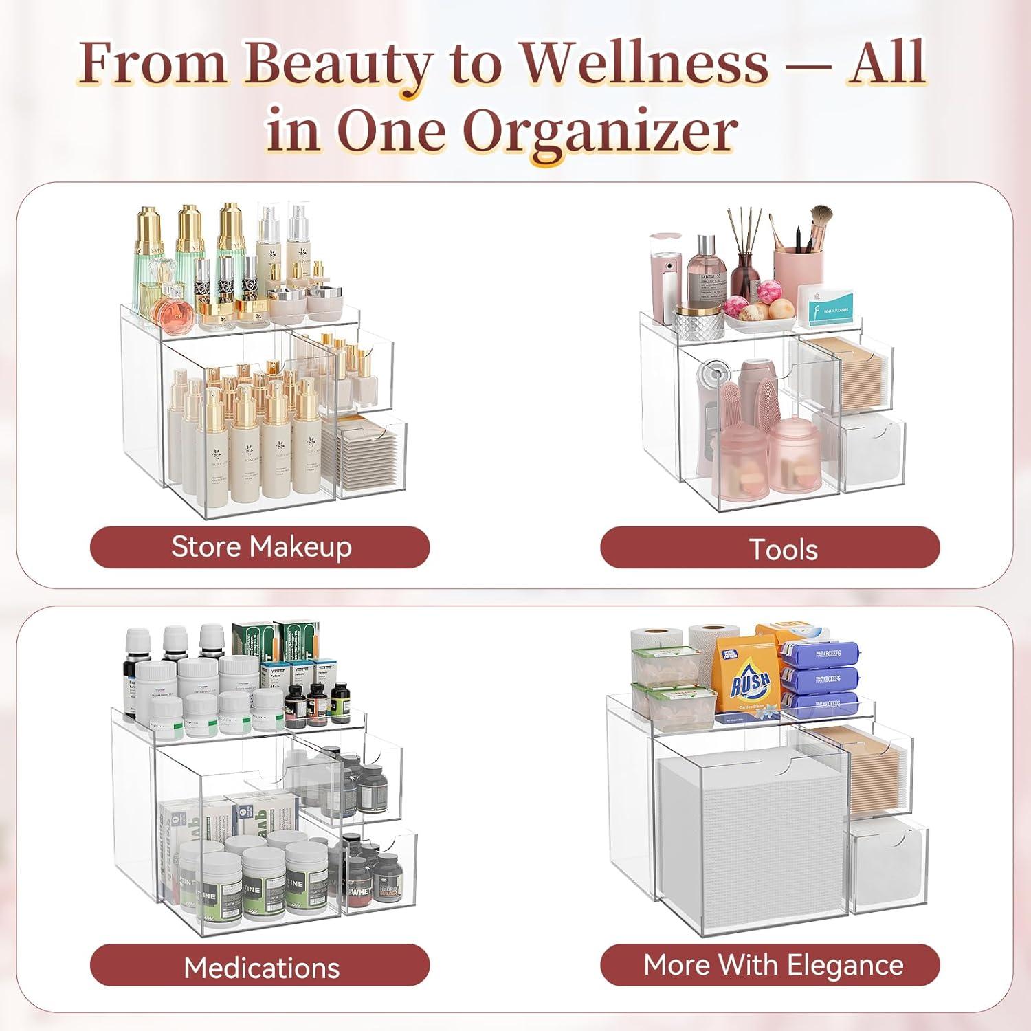 Triple-Drawer Acrylic Face Towel Box — This face towel holder keeps 50+ towels, swabs, and pads neatly stored, making skincare routines faster and easier.