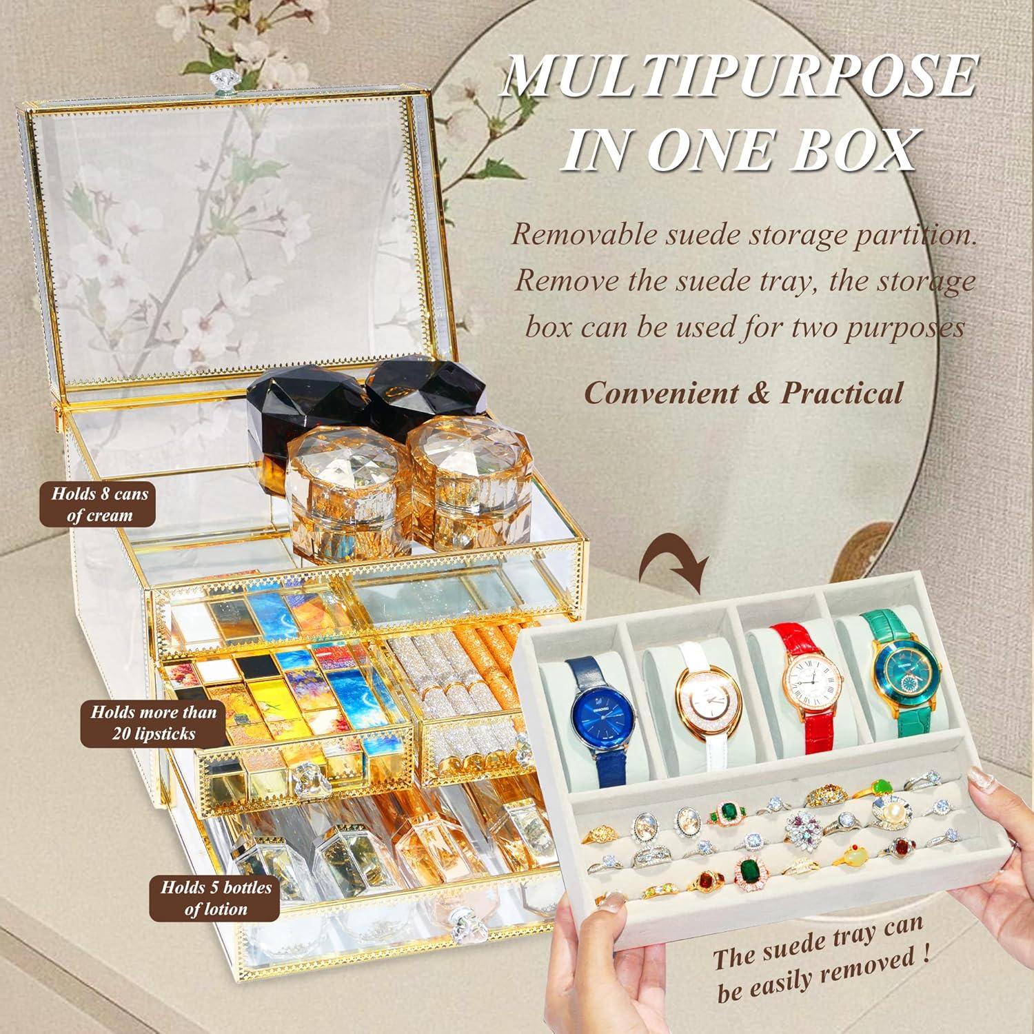 Premium Quality Material: Crafted from high-quality double-layer plating tempered glass, our glass jewelry box is engineered to resist rust and fading, ensuring your precious items are well-preserved for years to come. This jewelry organizer is a testament to enduring beauty and protection.