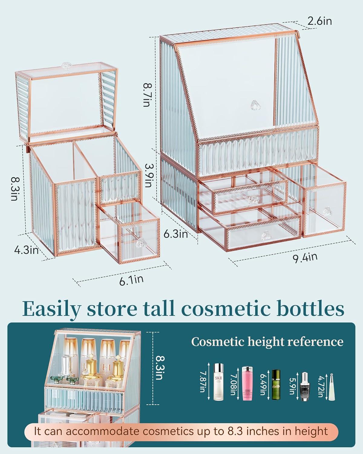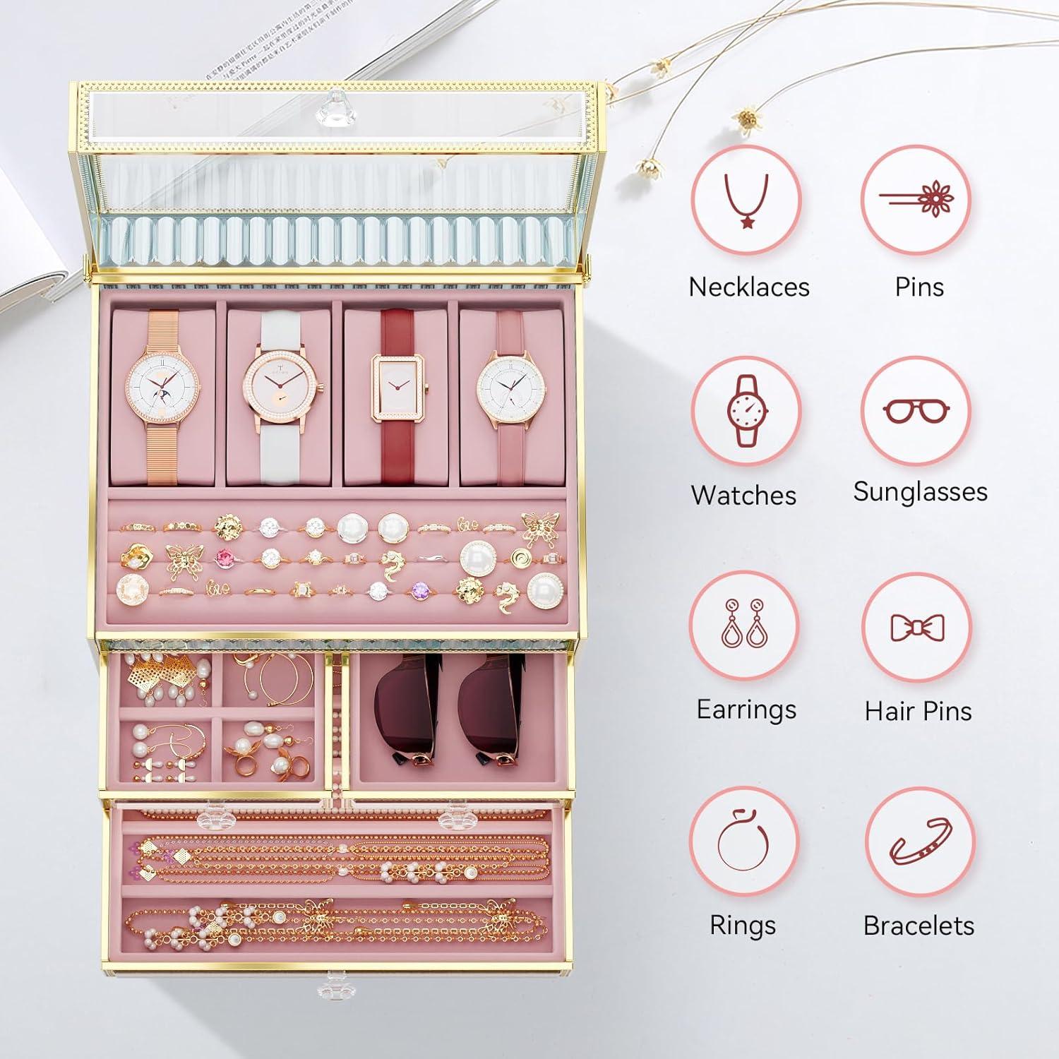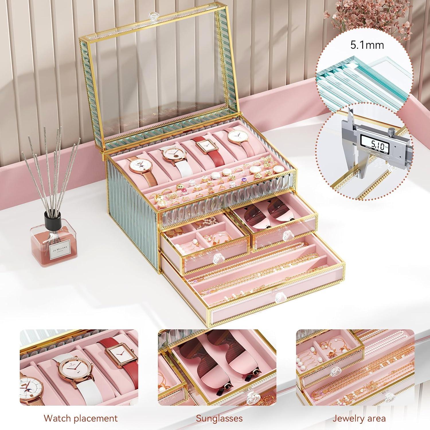 Exquisite Gift Choice: This elegant glass jewelry box and makeup organizer makes a perfect gift for special occasions such as Christmas, birthdays, Valentine’s Day, and Mother’s Day, ideal for those who appreciate stylish and organized jewelry storage.